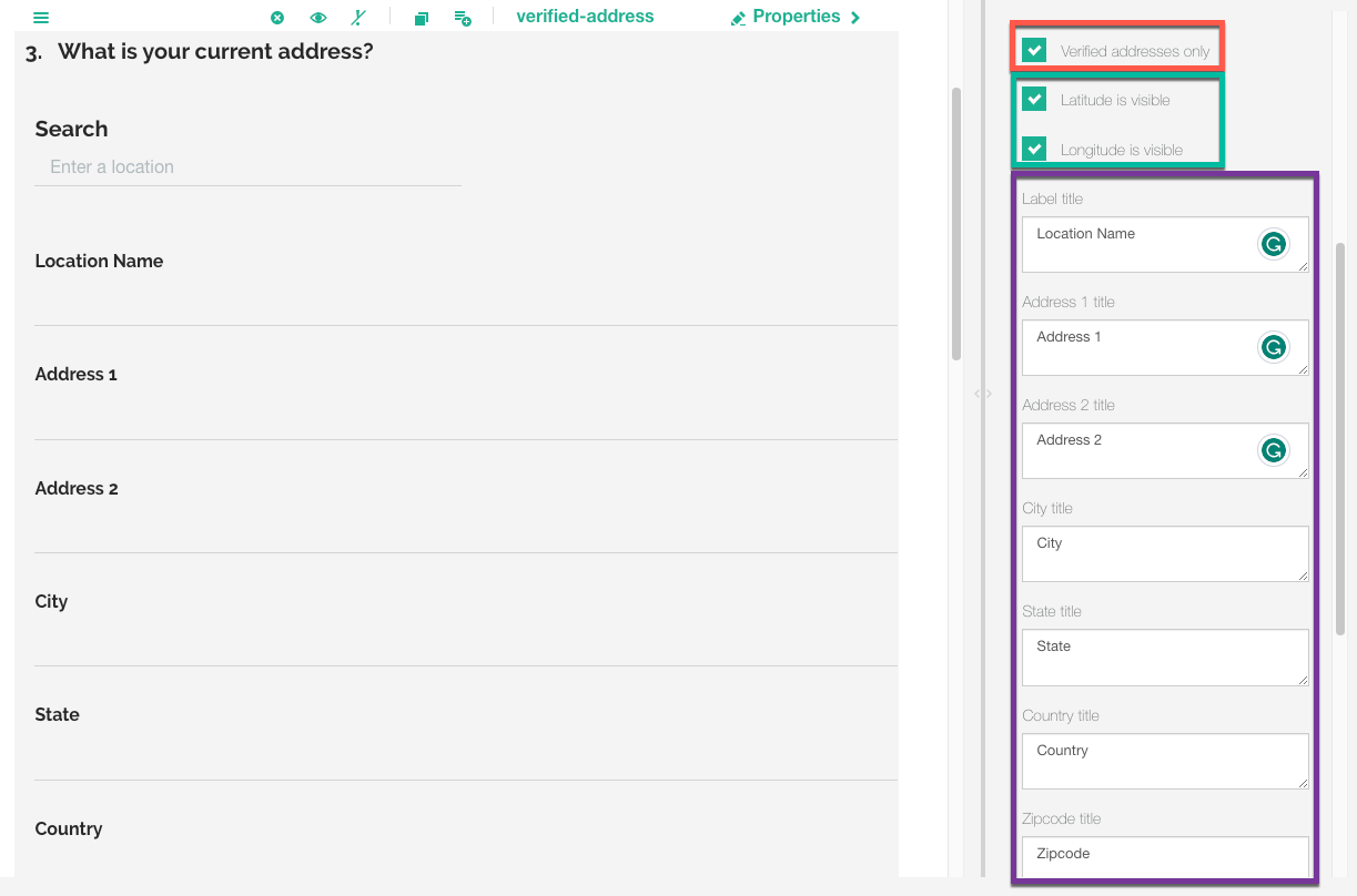 To collect Google-verified addresses, follow these steps to add a Verified Address question to your survey: