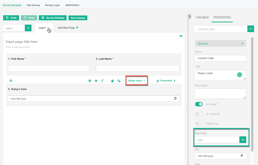 - Add a "Single Input" question to capture the respondent’s date of birth.