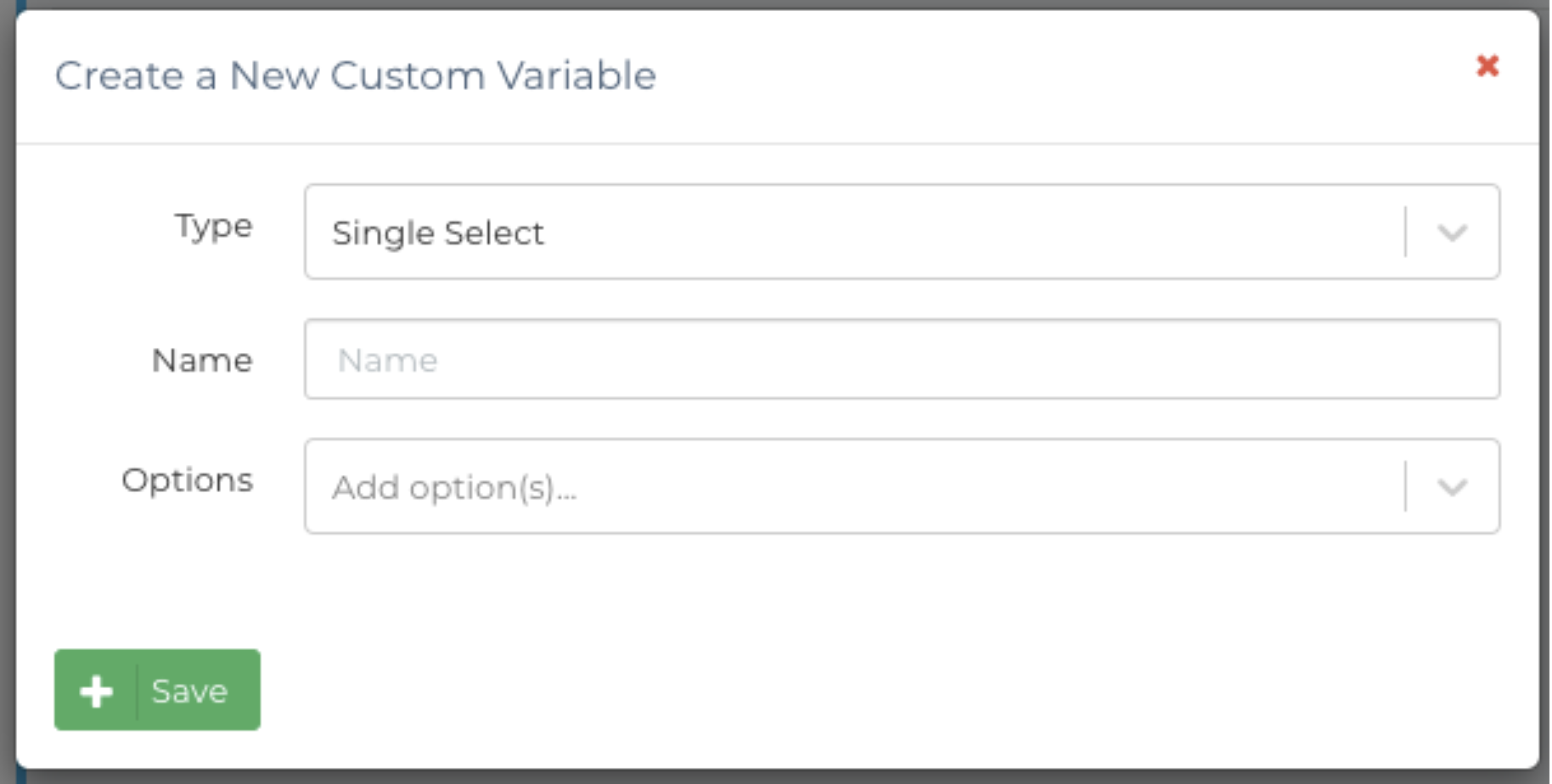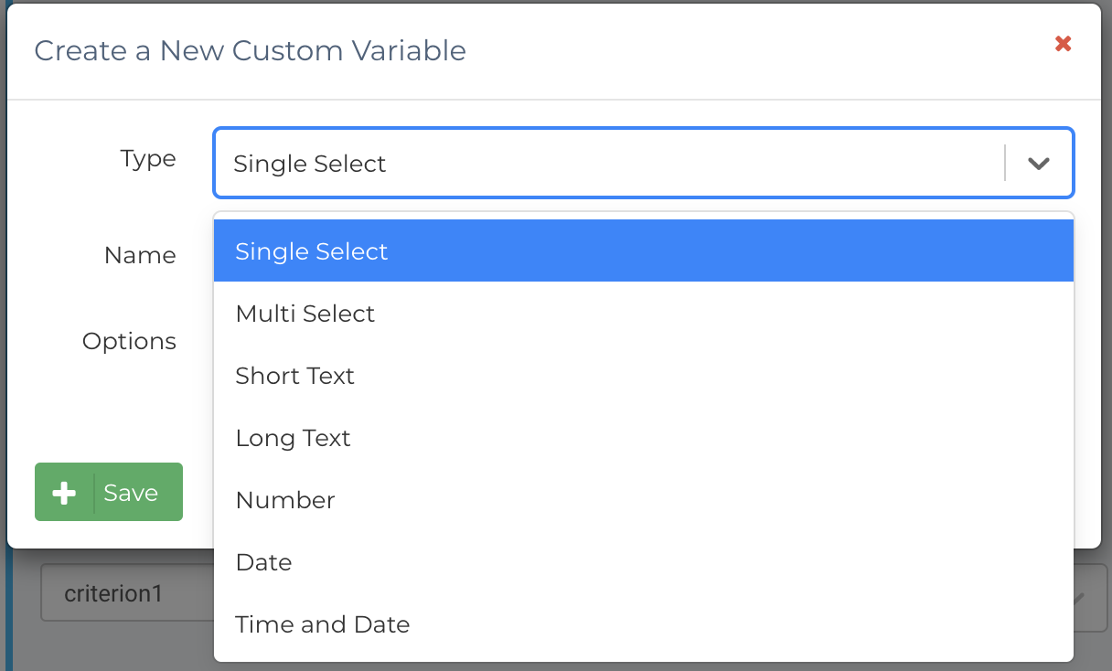 - Selector: A dropdown menu to choose the type of variable (e.g., single-select, number, multiple-choice).