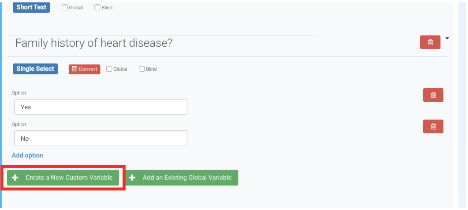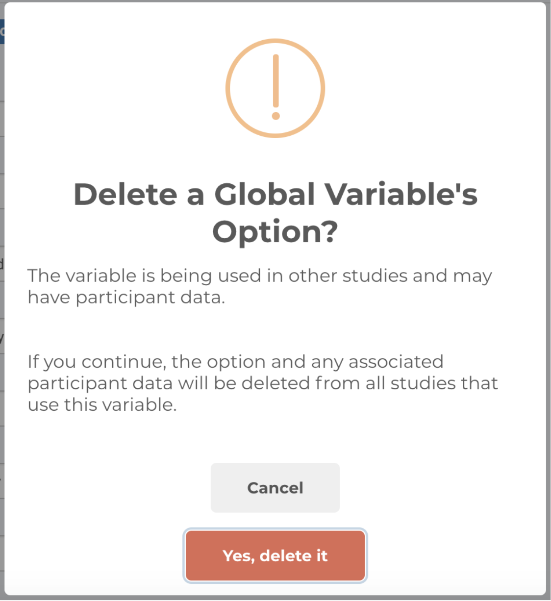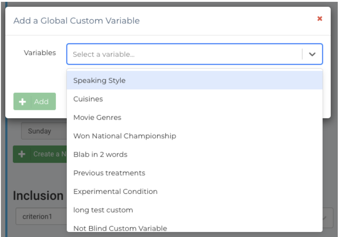 - The Add an Existing Global Variable button lets you reuse a previously created Global Variable from another study.