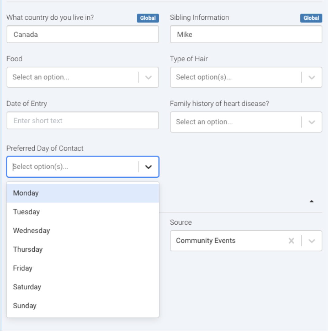 - Example: "Dietary Restrictions" or "Preferred Day of Contact."