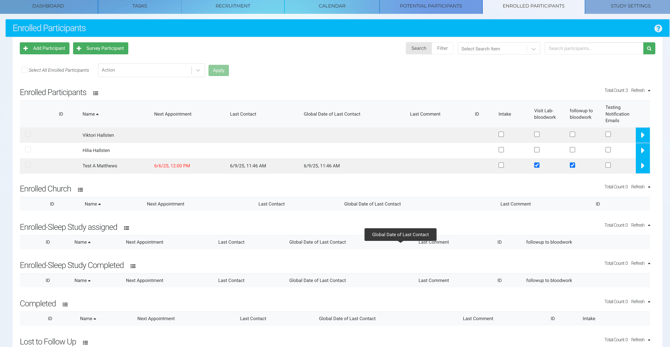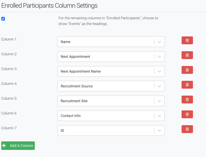 Ripple allows you to customize the Enrolled Participants tab to display important variables in a format similar to the Potential Participants tab.