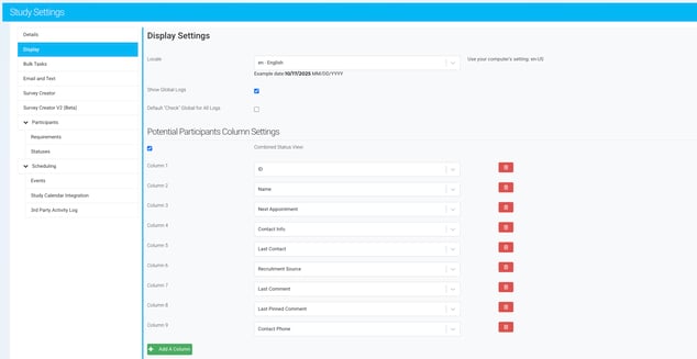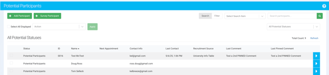 If you’re trying to export or review all Potential Participants regardless of where they are in your recruitment workflow, enabling Combined Status View provides a streamlined way to see and manage them all at once.