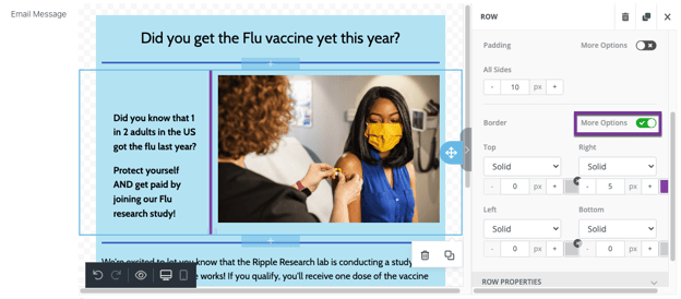 - Use the “More Options” (purple) button to choose which sides (top, bottom, left, right) will have a border.