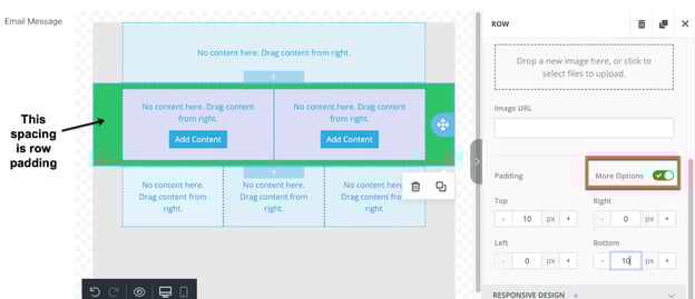 - Toggle the “More Options” (red)button to individually adjust padding for the top, right, left, and bottom of the row.
