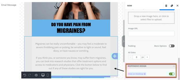 - Toggle "Hide on Desktop" or "Hide on Mobile" to make blocks invisible on a specific device.