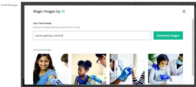 Select from the generated image options to insert into your email.