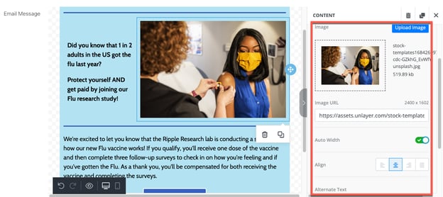 - Select the image in your email template.
