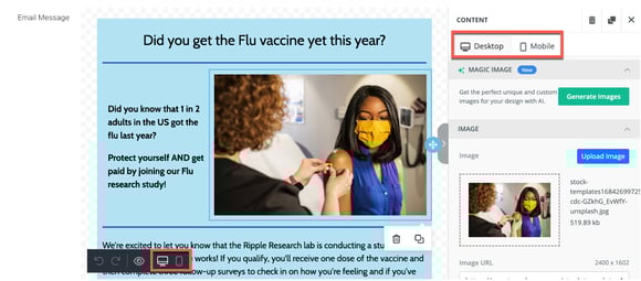 - Selecting the Desktop or Mobile tab at the bottom left of the editor.
