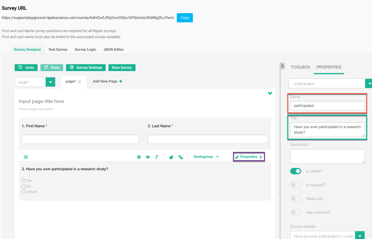 Follow these steps to create a basic survey using the Ripple Survey Creator: