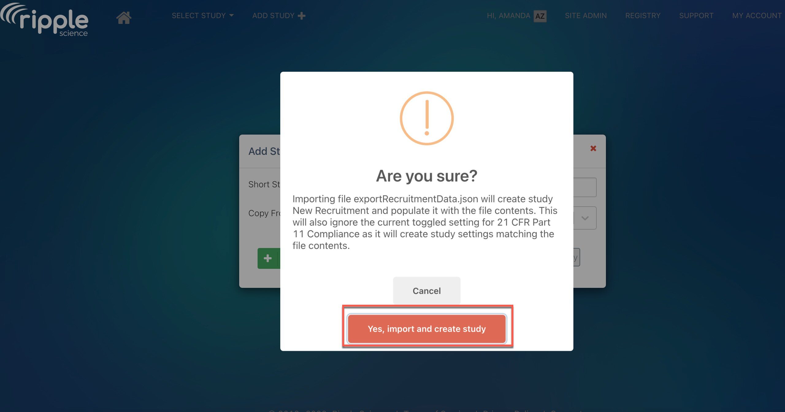 - Ripple will prompt you to confirm the import. Click “Yes, import and create study.”