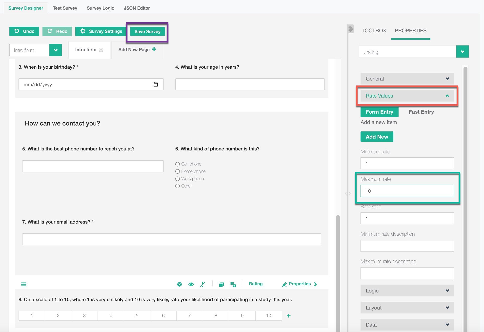 - Click the “Save Survey” button (purple)
