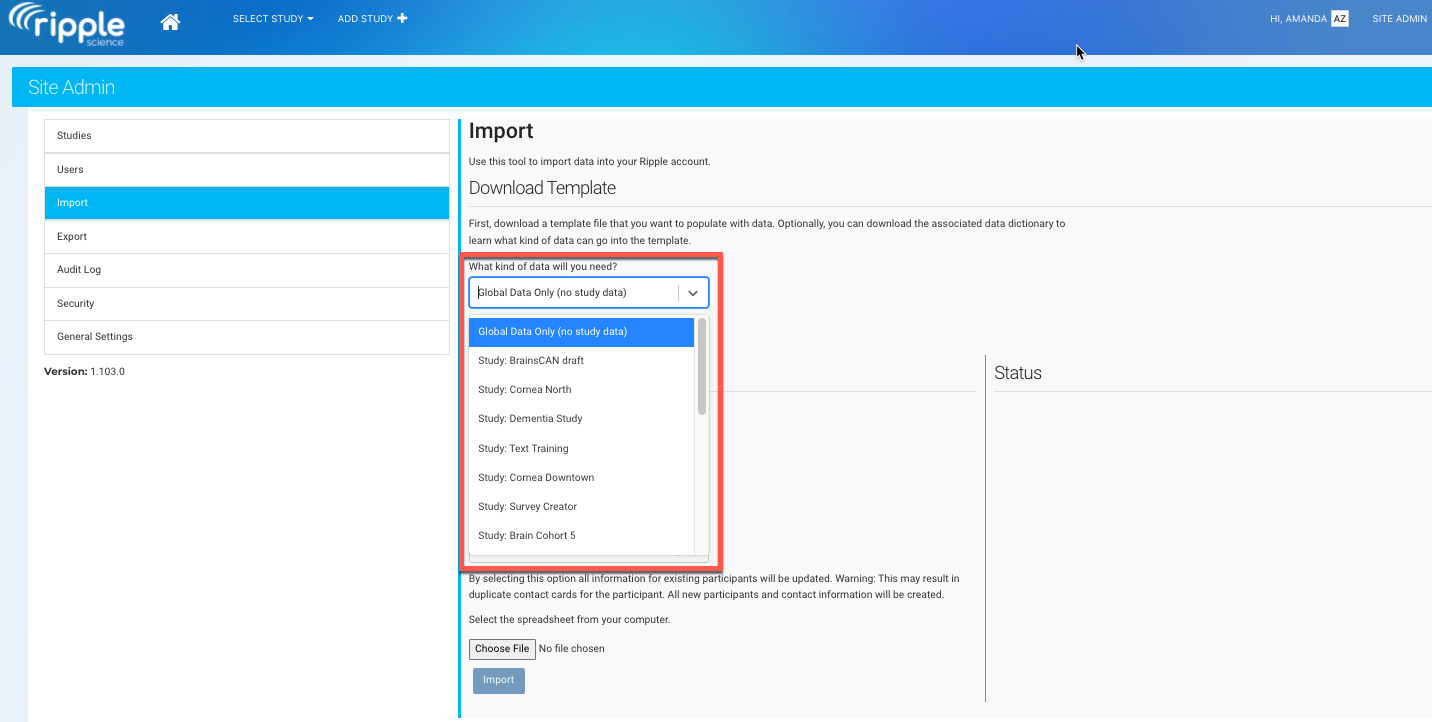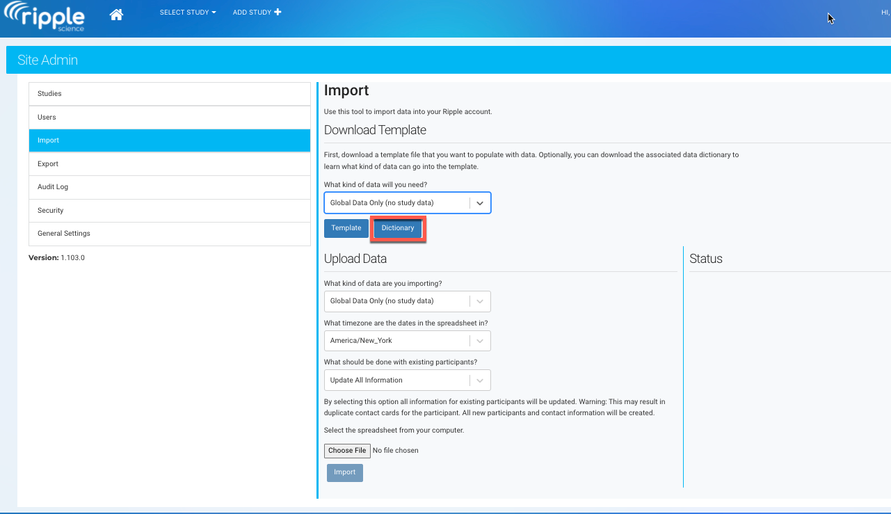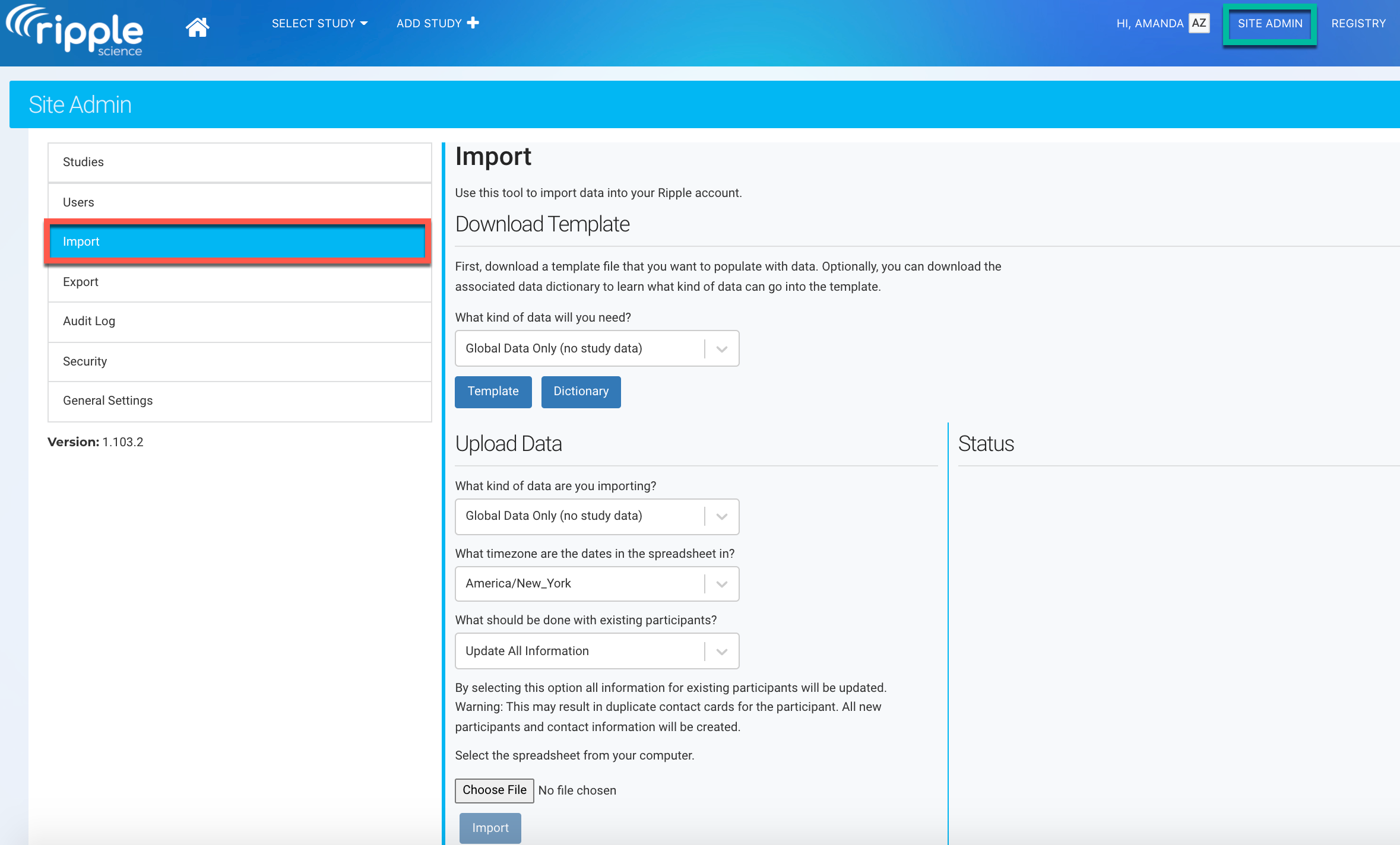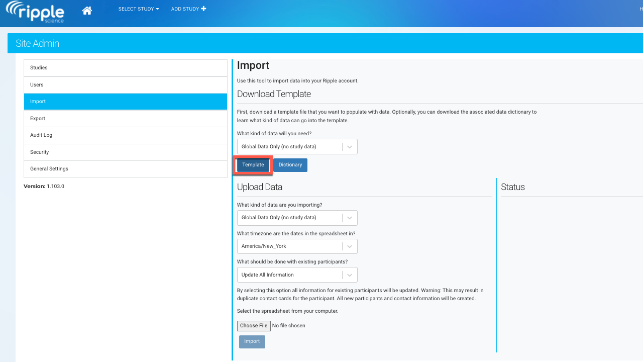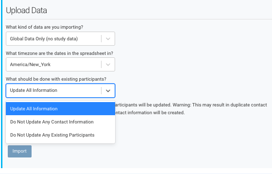 Importing participant data in bulk helps migrate existing participant information into Ripple. Only Site Administrators and Site Managers have access to the Import tool.