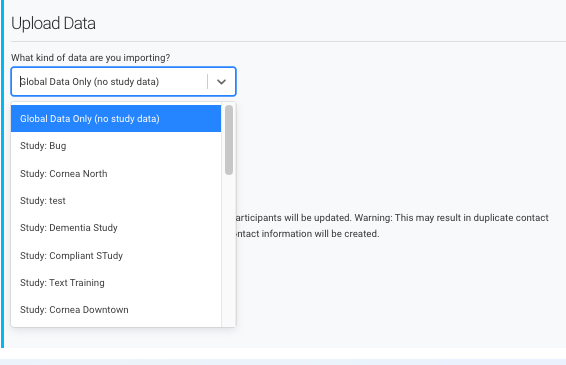• Use the dropdown to specify what data you are uploading.