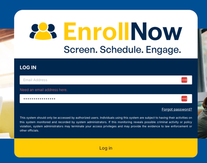 Ensure that an enrollment invitation has been sent to your email address. Do not attempt to enroll in EnrollNow without receiving and using the official invitation.