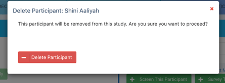 NOTE: Deleting a participant from a study, removes the participant from the study only—the participant record will still remain visible in the Registry.
