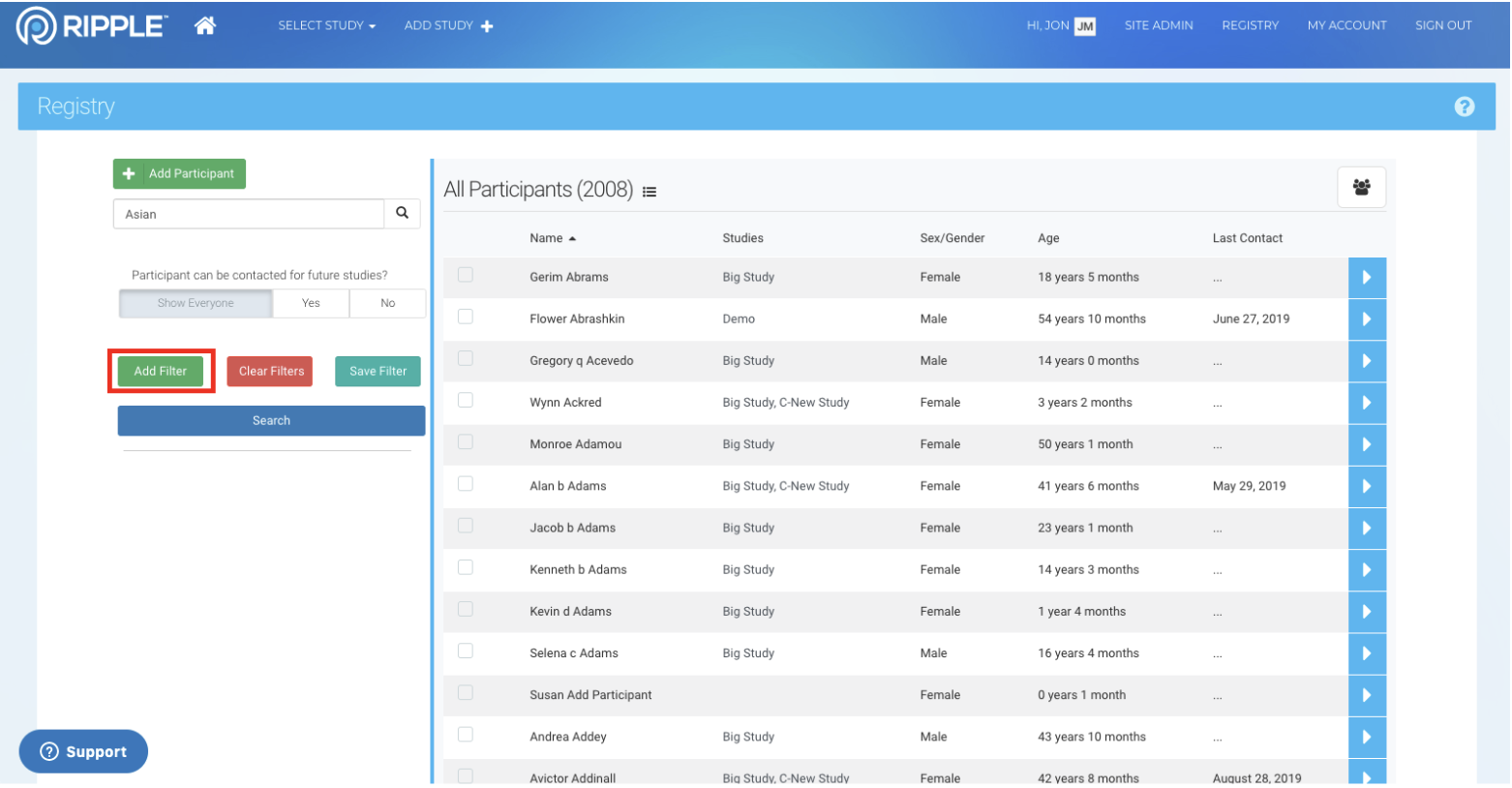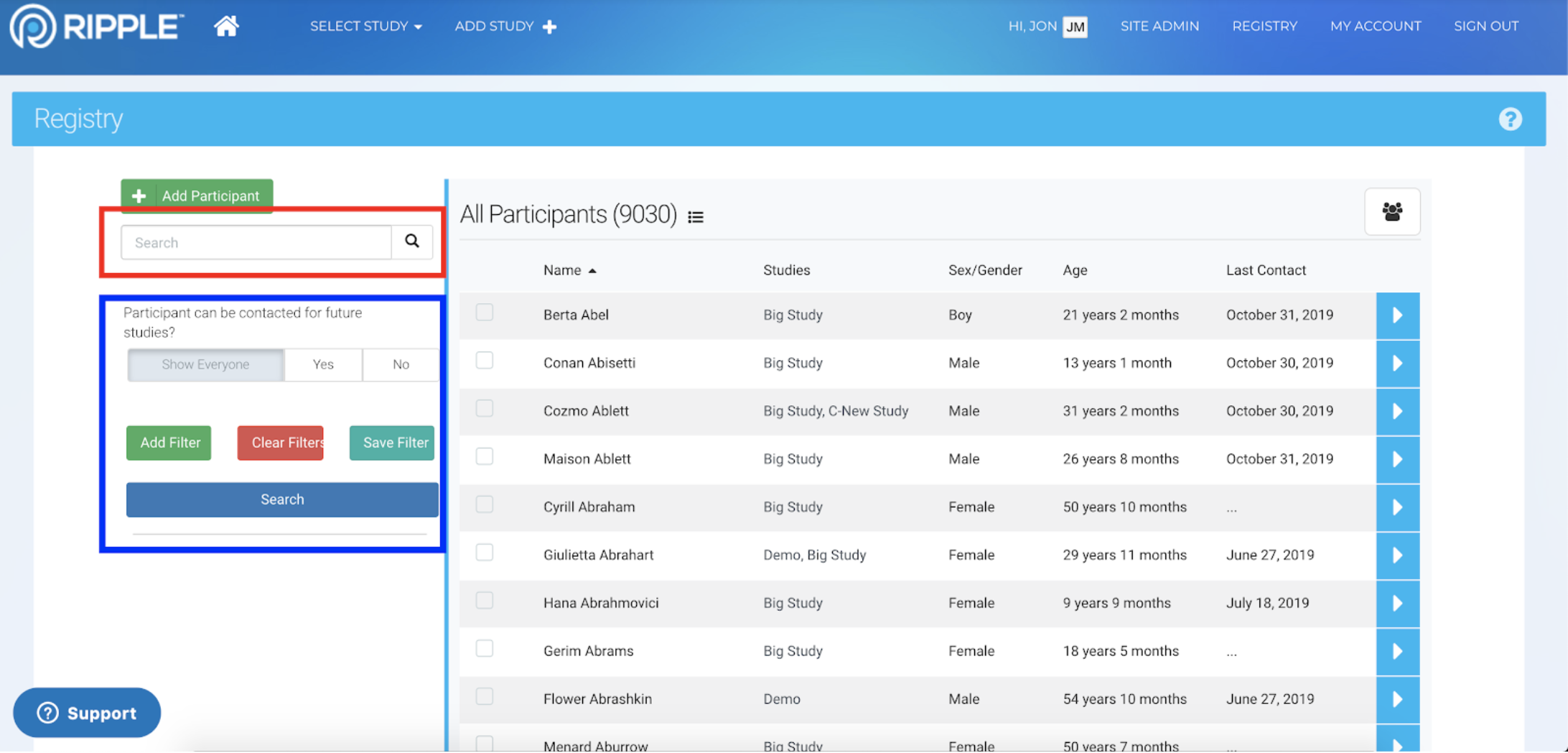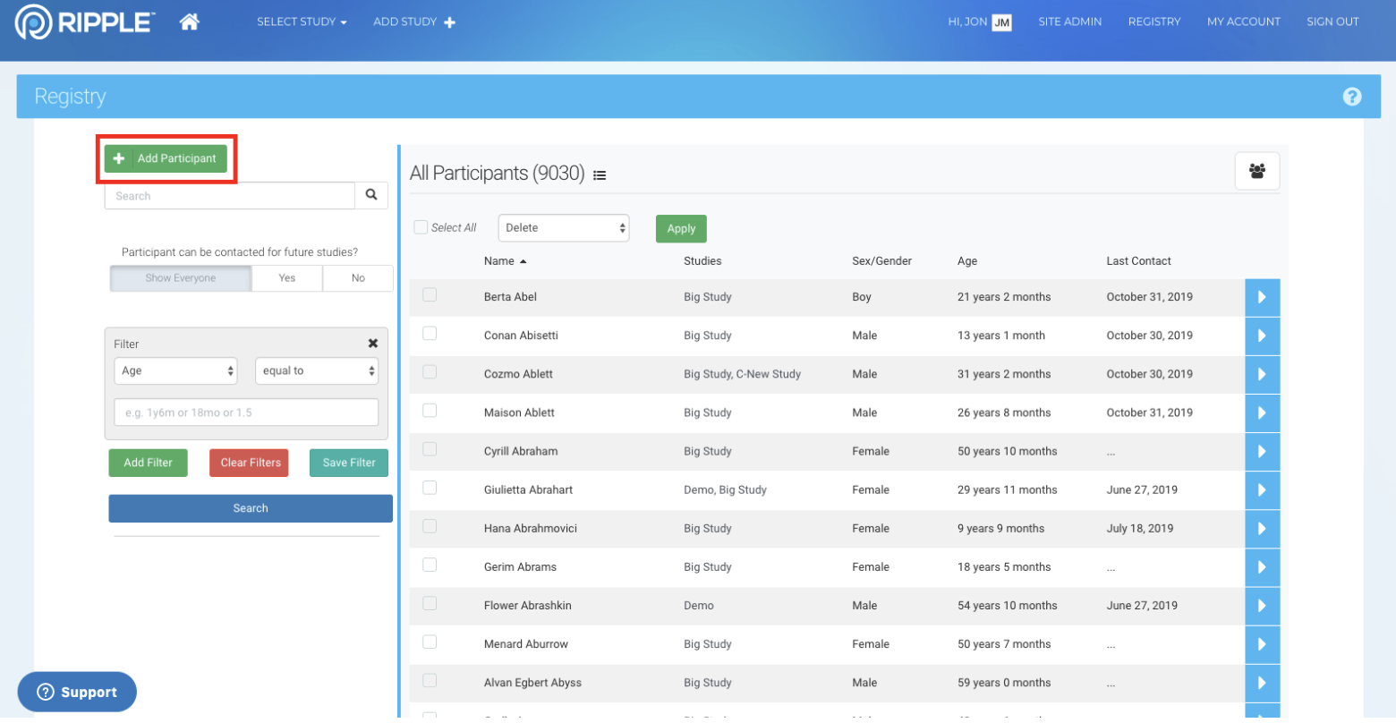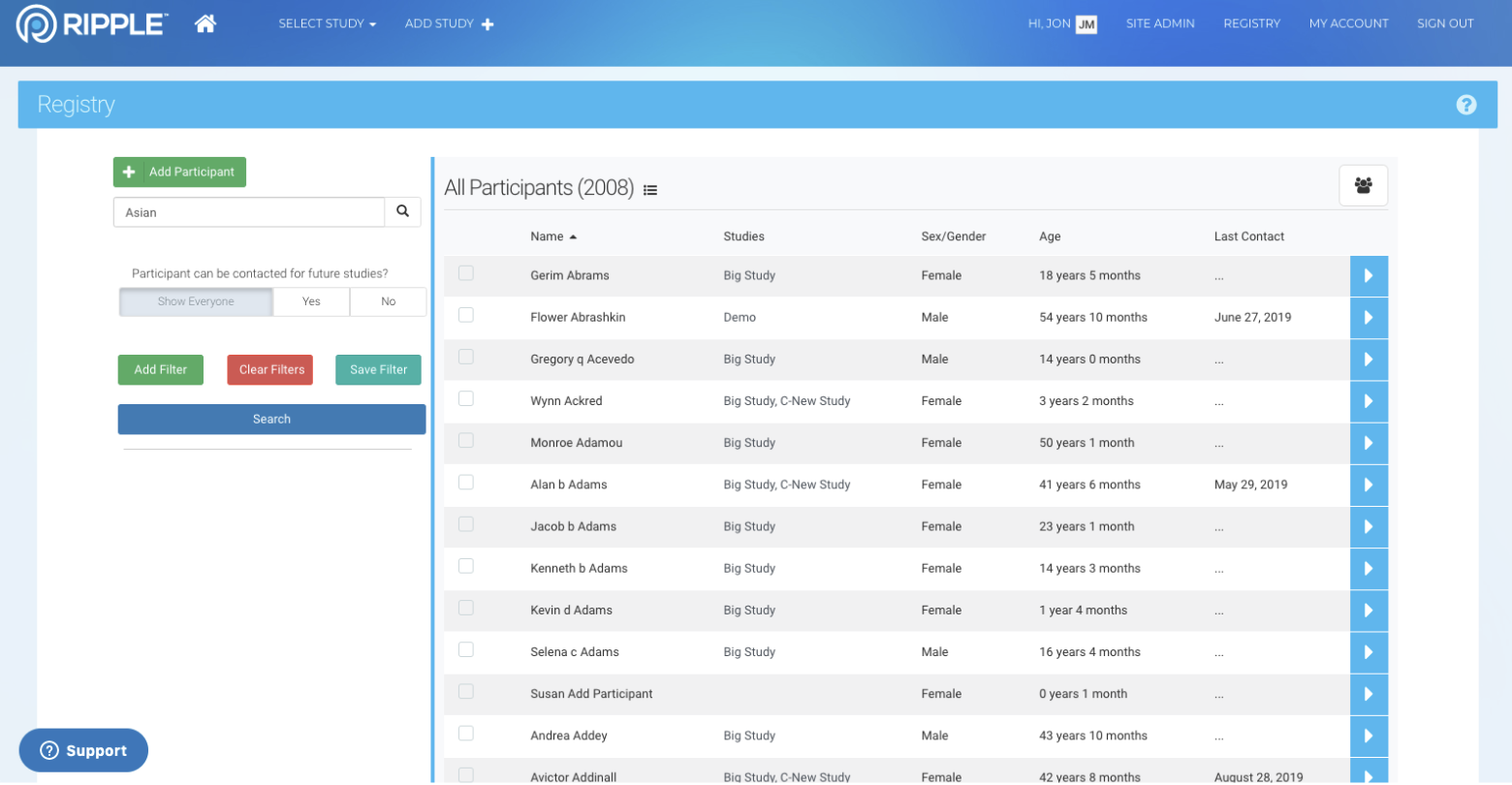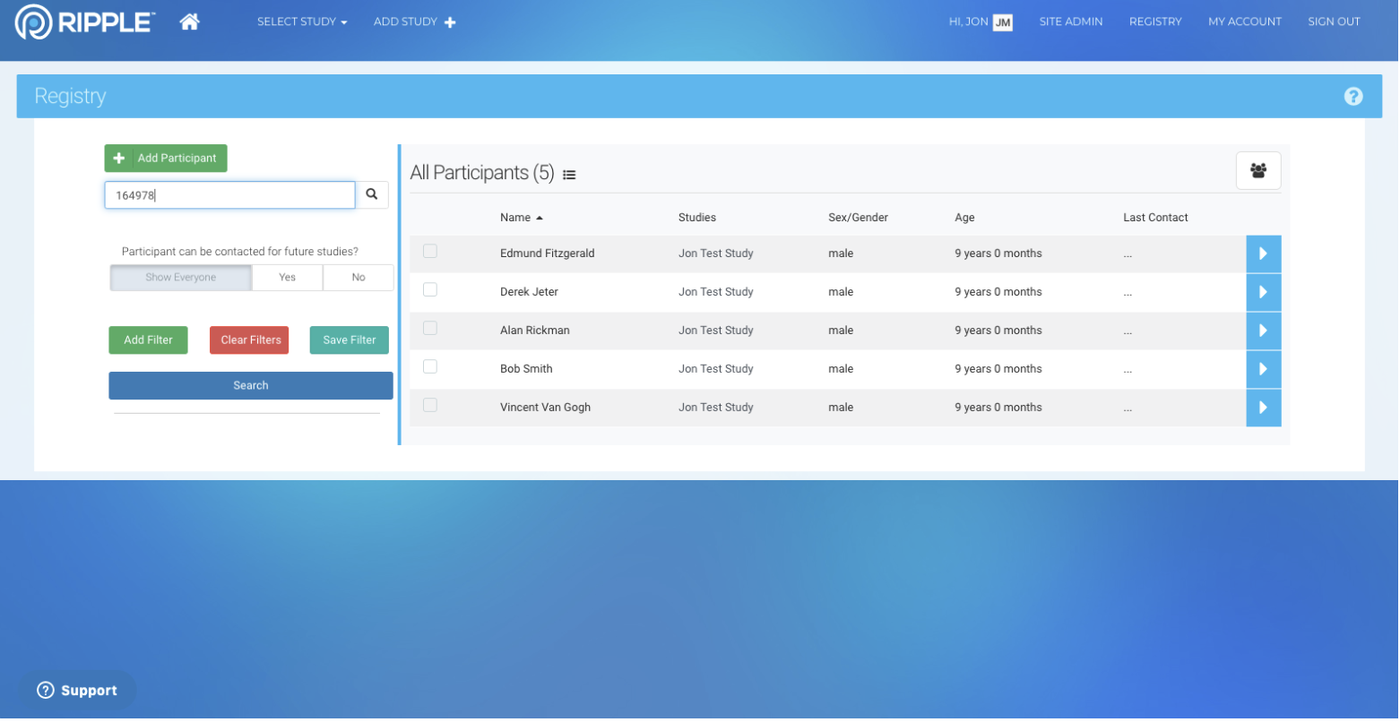 This will direct you to the Ripple Registry, where you can search, filter, and manage participant data efficiently.