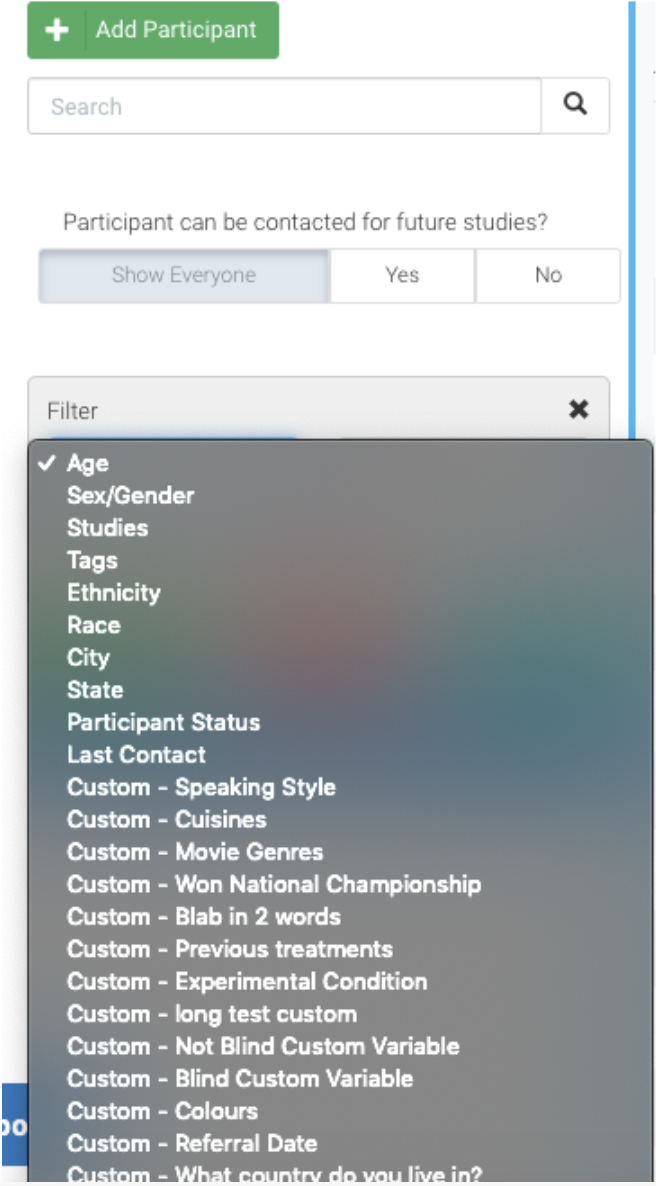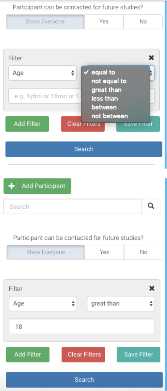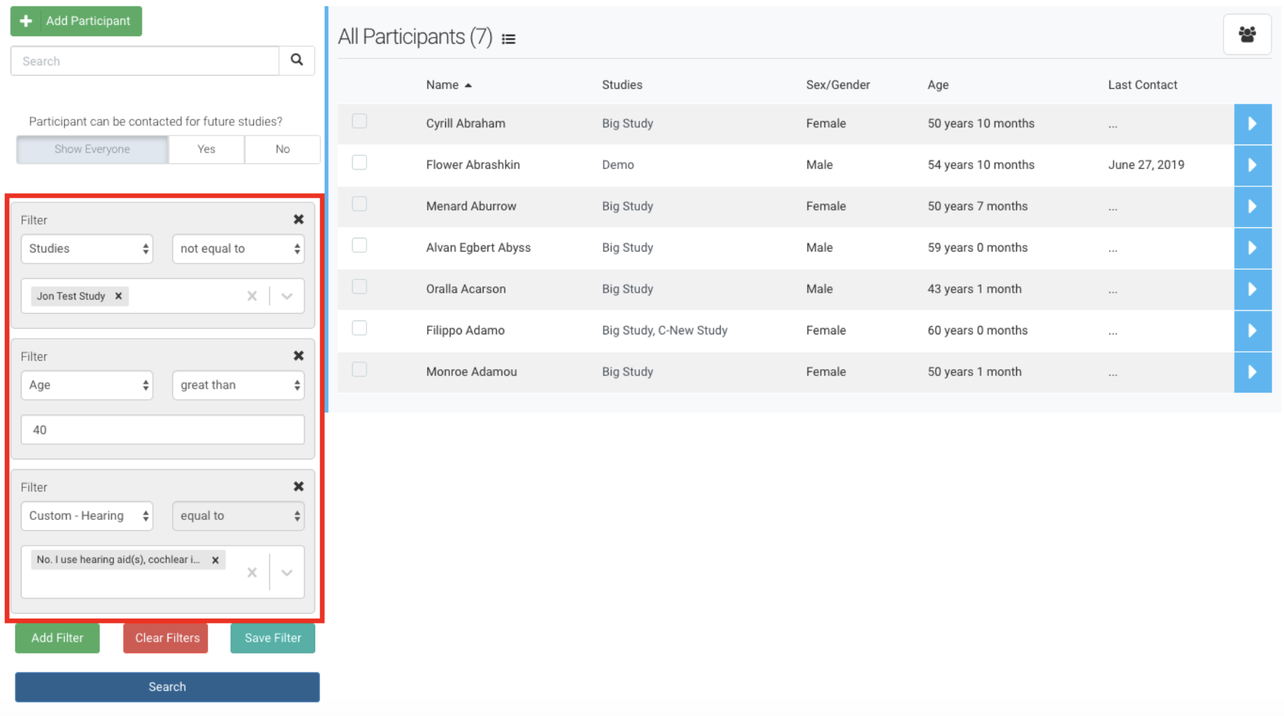 By combining Searching and Filtering, you can narrow down your registry to identify ideal participants for your study.