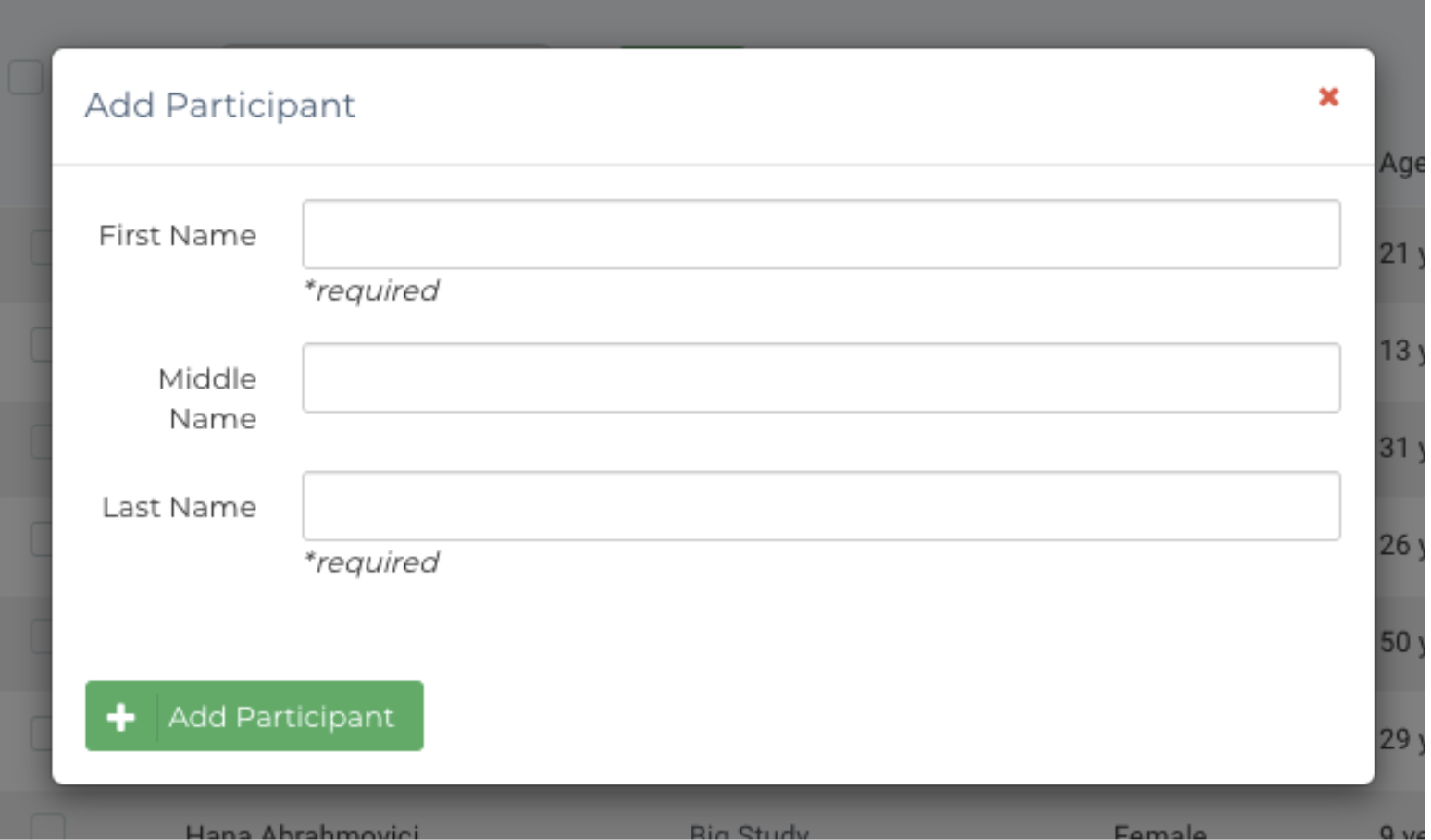 If a participant is not yet enrolled in an active study, you can manually add them to your registry using the "Add Participant" button.