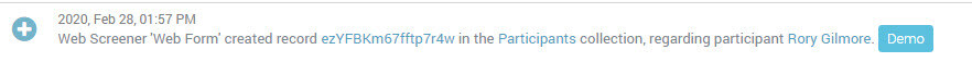 Audit Log. Participants added to a study via a Screening Form will also have a timestamp listed in the Audit Log. As a reminder, the Audit Log is viewed on the Site Admin page.
