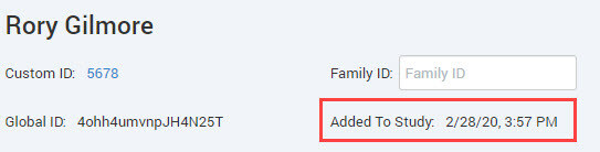 Study Participant Profile. The date the participant was added to a study is visible on the Study Participant Profile page.