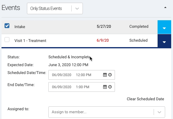 Similarly, when an event is marked as missed, the Missed Date/Time is set as the event’s scheduled (or expected) date. Previously the missed date was set to the current date/time which caused future expected dates to be calculated incorrectly. To mark a date as missed, hold the Shift key while clicking the event’s checkbox.
