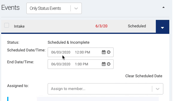 Improved default Event completion and missed dates. When an event is marked as completed the Completed Date/Time will now default to the event’s scheduled (or expected) date. Previously the completed date was set to the current date/time.