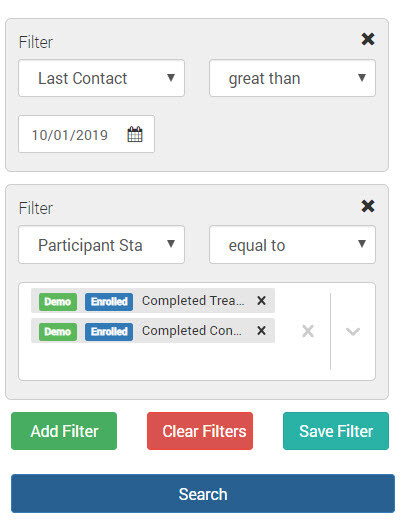 To help teams identify participants in the Registry, users can now add filters for “Global Date of Last Contact” and by the participants' “Status.” To help users save time they can save their configured search and use it again at any time. The searches are user-specific, therefore you cannot share them with other users at this time.