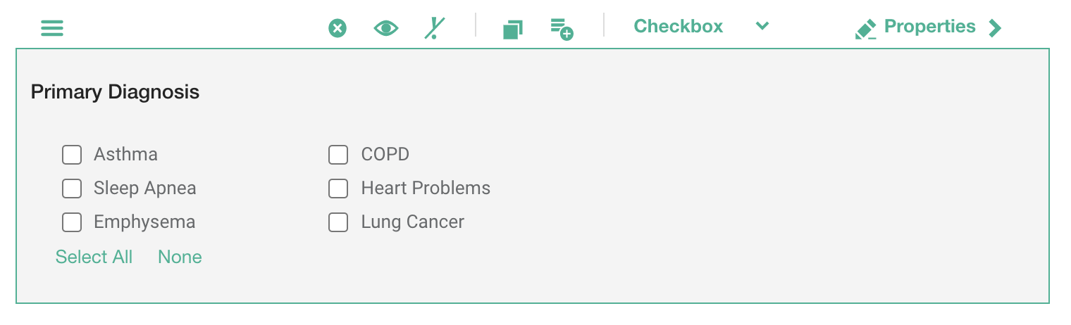 The Checkbox question type allows participants to select multiple answers from a displayed list using clickable checkboxes.