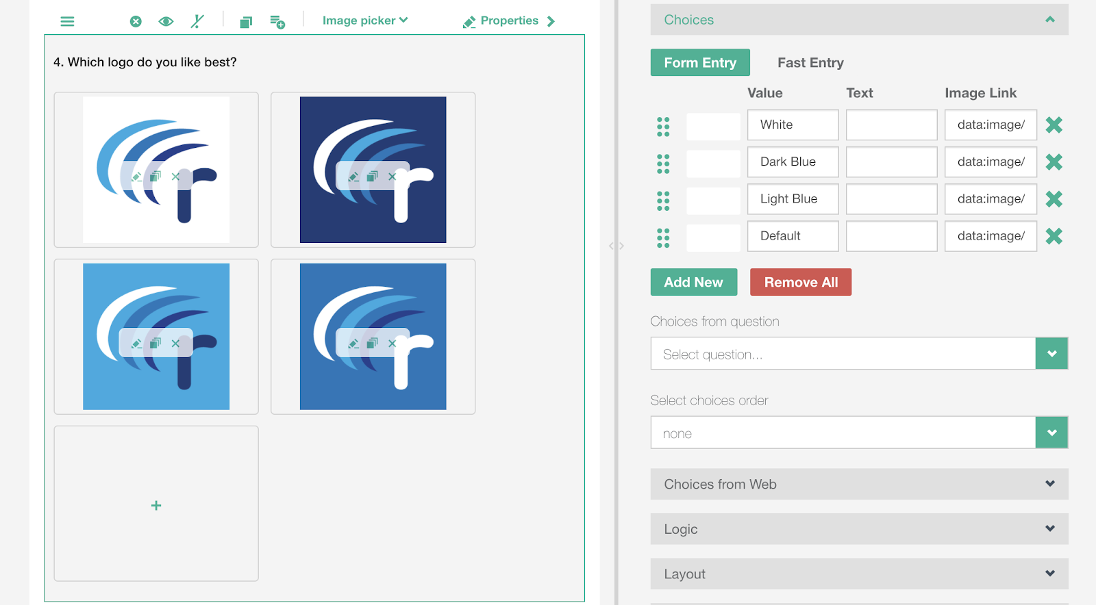The Image Picker question type allows respondents to select from custom images instead of text-based options.