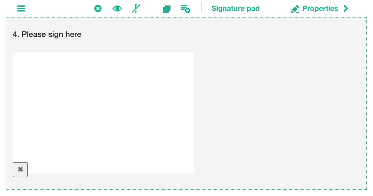 The Signature Pad allows respondents to draw their signature, initials, or any other pattern directly into the survey.