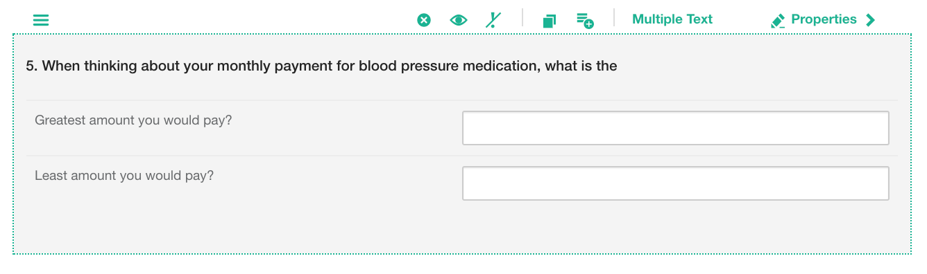 The Multiple Text question type allows respondents to enter multiple pieces of text under a single question, with each input field corresponding to a different prompt.