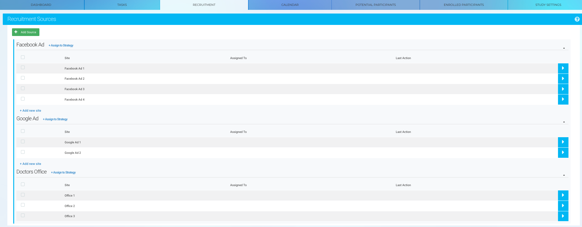 ✅ Upon enrollment, the Recruitment Source and Site data will appear in the Study Dashboard.