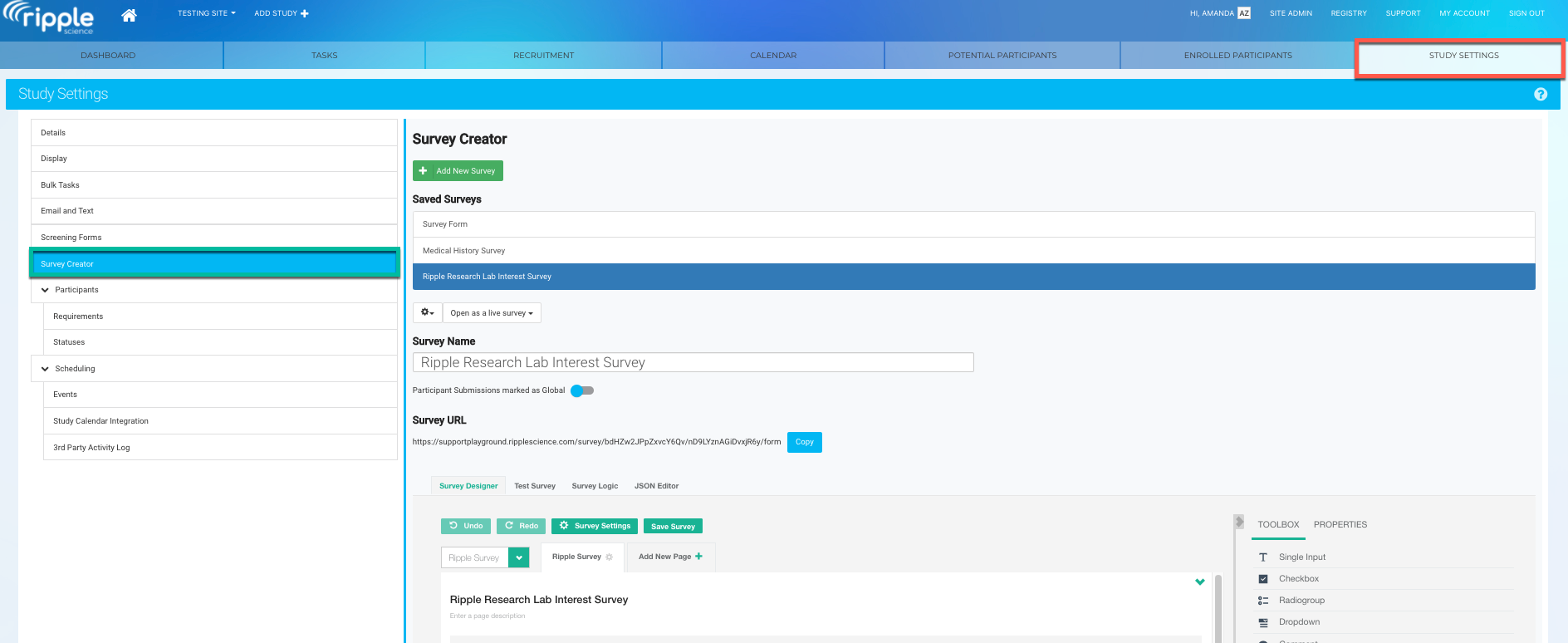 This ensures Ripple generates a URL for your survey.