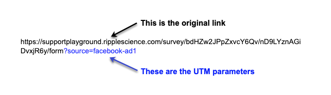 UTM parameters are small, concise tags added to the end of a survey URL. When a participant completes a survey from a tagged link, the UTM parameters are sent back to Ripple to track your recruitment success.