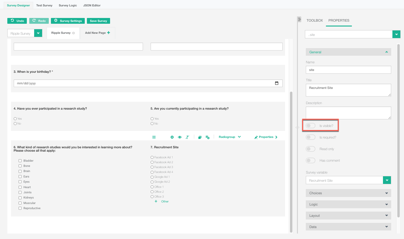 6. Hide Source and Site Questions in the Survey