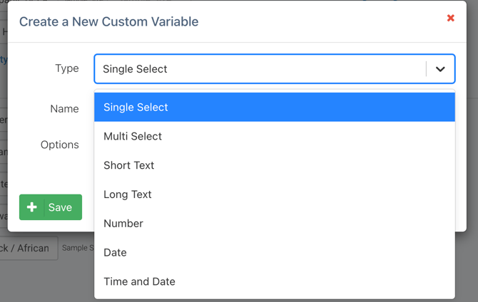 Types of Custom Variable Fields: