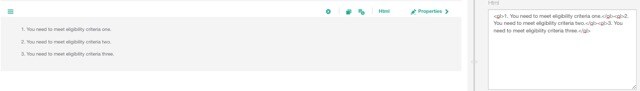 - Example: <ol>1. You need to meet eligibility criteria one.</ol> <ol>2. You need to meet eligibility criteria two.</ol> <ol>3. You need to meet eligibility criteria three.</ol>