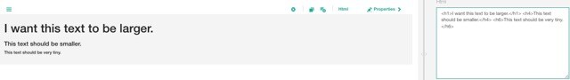 - Example: <h1>I want this text to be larger.</h1> <h4>This text should be smaller.</h4> <h6>This text should be very tiny.</h6>