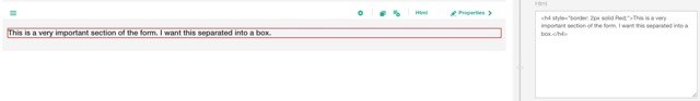 - Example: <h4 style="border: 2px solid Red;">This is a very important section of the form. I want this separated into a box.</h4>