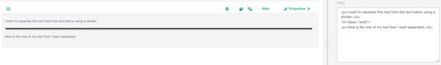 - Example: <p>I want to separate this text from the text below using a divider.</p> <hr class="solid"><p>Here is the rest of my text that I want separated.</p>