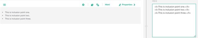 - Example: <li>This is inclusion point one.</li> <li>This is inclusion point two.</li> <li>This is inclusion point three.</li>