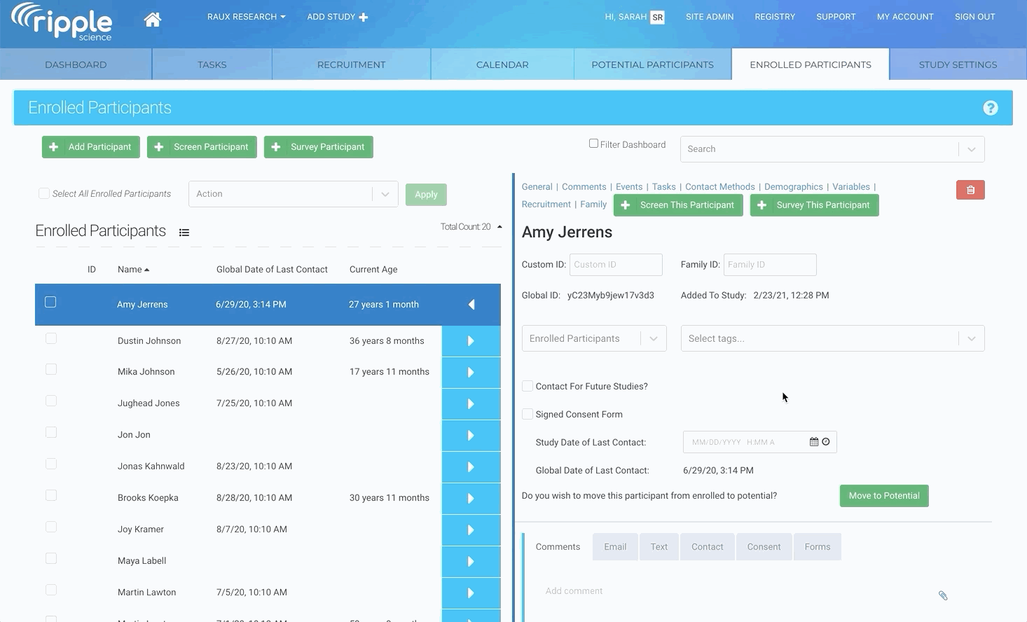 This feature helps ensure participant records remain accurate, up-to-date, and aligned with study requirements.