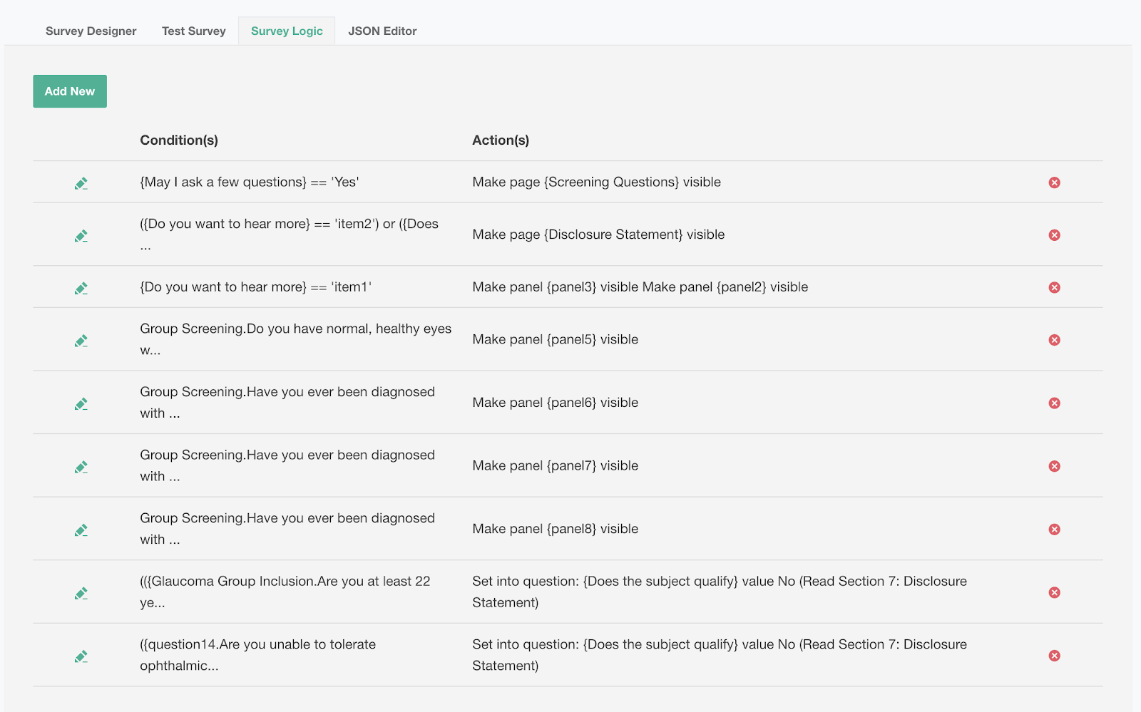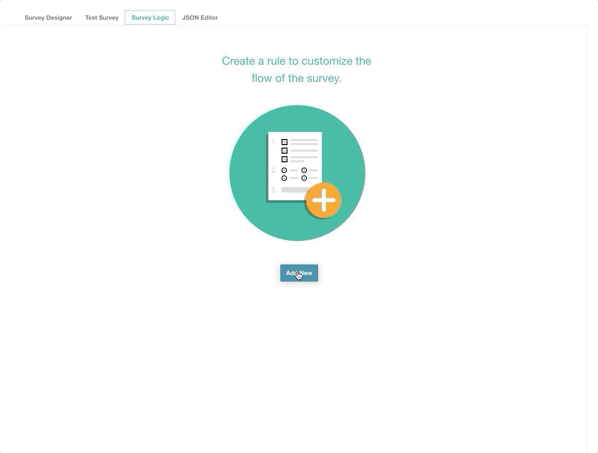 - Navigate to the Survey Logic tab and select “Add New” to create a new logic statement.