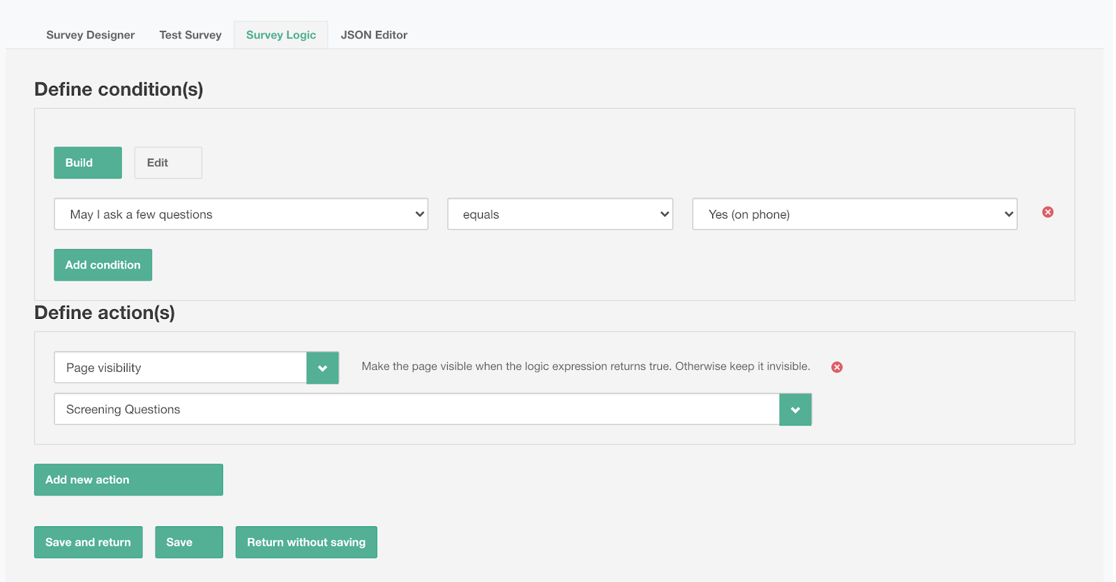- Click "Save and Return" to apply the logic.
