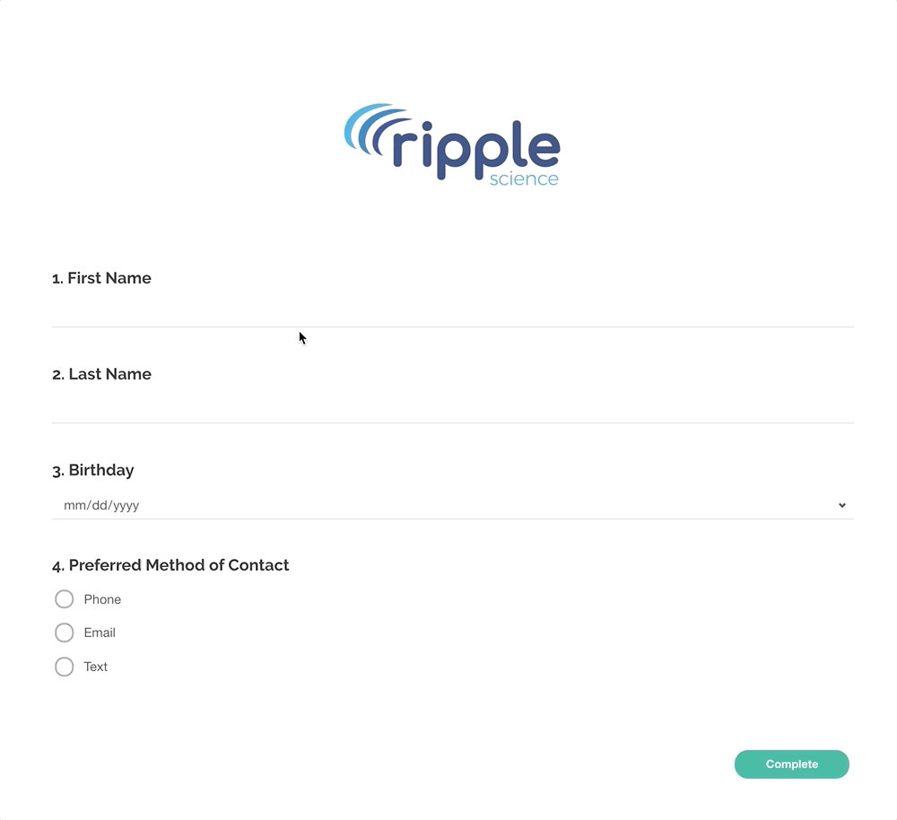 In this example, we will ask participants for their preferred method of contact and display the corresponding contact method fields based on their response.